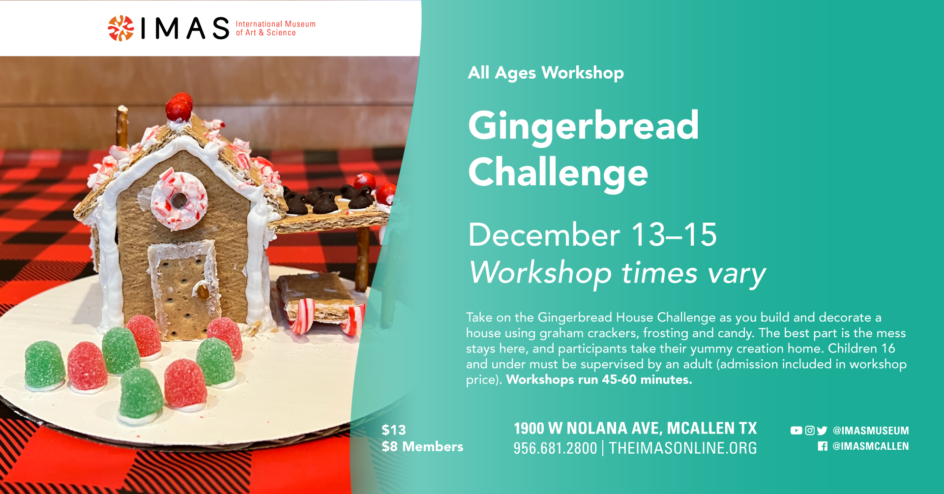 Take on the Gingerbread House Challenge as you build and decorate a house using graham crackers, frosting and candy. The best part is the mess stays here, and participants take their yummy creation home. Workshops run 45 - 60 minutes.